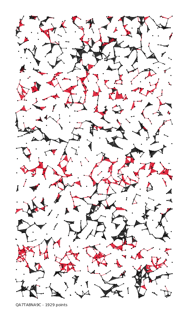During PythonBrasil[14] at Natal, Rio Grande do Norte, Brazil, I've created a visual project using the participant's badges. Each badge had a 10 chars identification token and, using this token as an input to control the sketch randomness, I've generated one single image per badge.